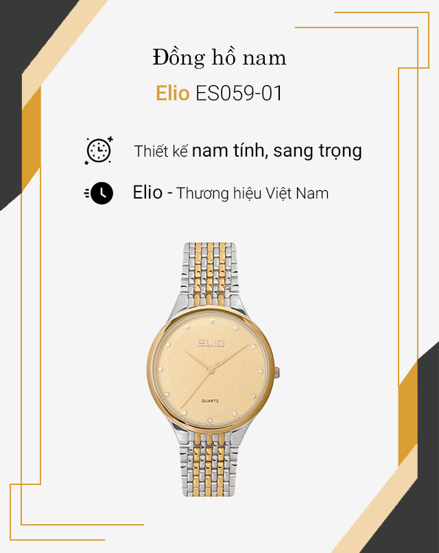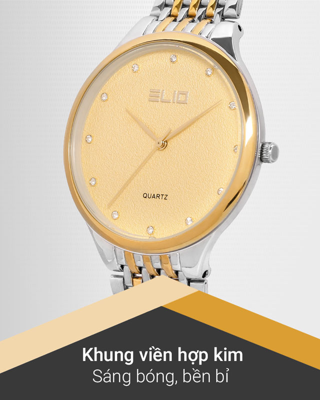 - Đồng hồ Elio với kiểu dáng, mẫu mã năng động, trẻ trung phù hợp với mọi lứa tuổi, đồng thời đồng hồ Elio còn mang vẻ đẹp sang trọng, lịch lãm. Đặc biệt đồng hồ Elio còn sử dụng bộ máy của Nhật Bản với chất lượng và độ bền cao.
