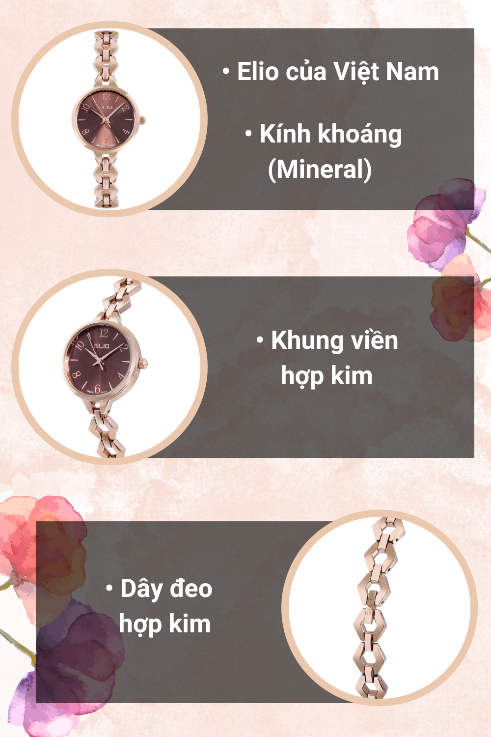 - Mang đến nét đẹp sang trọng trên cổ tay quý cô với thiết kế tinh tế, thời thượng đến từ hãng đồng hồ Elio, thương hiệu của Việt Nam