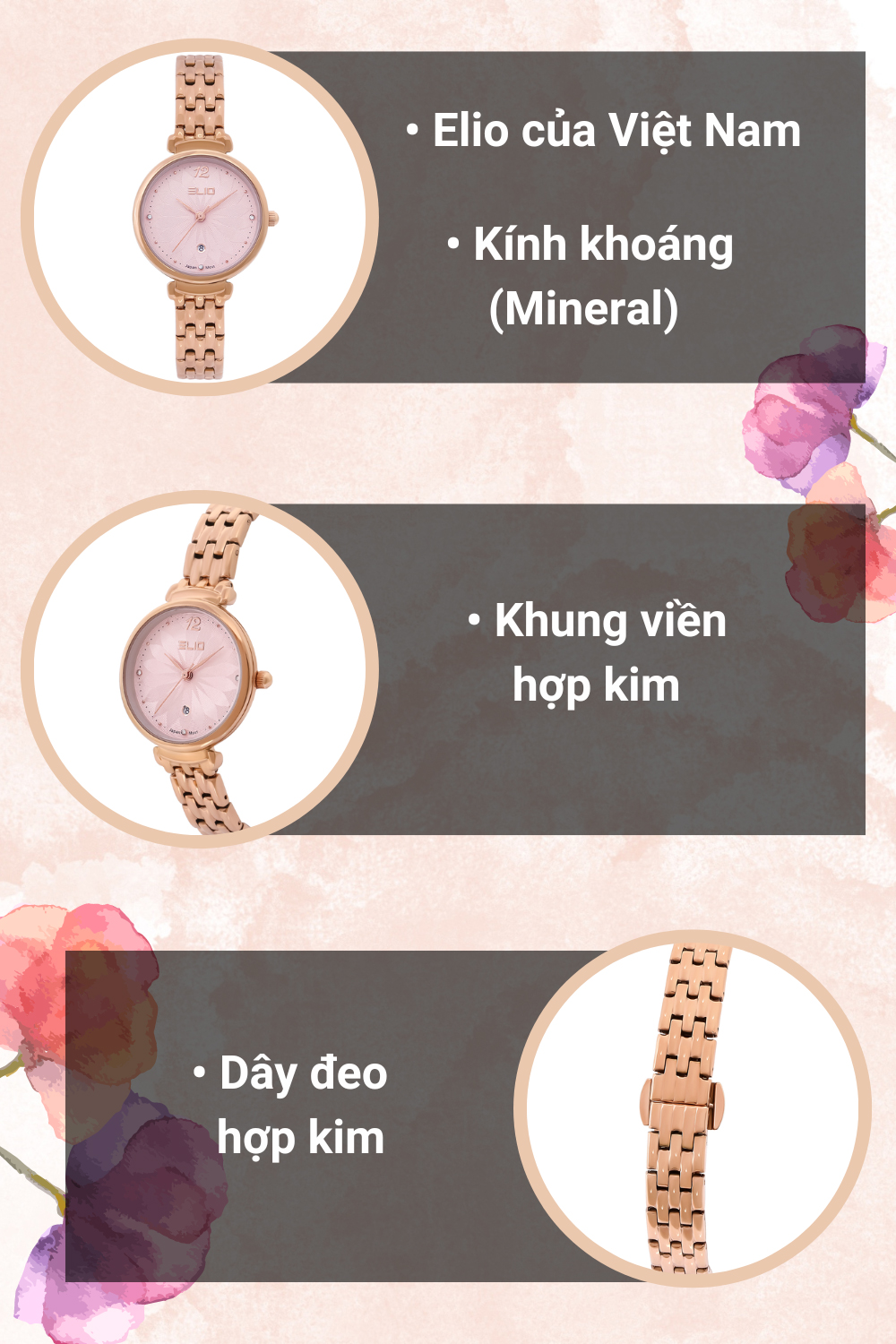 Đồng hồ ELIO Flower 30 mm Nữ ES120-02 đến từ hãng đồng hồ Elio chất lượng và uy tín của Việt Nam - thương hiệu độc quyền của Thế Giới Di Động.