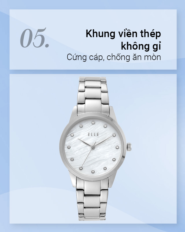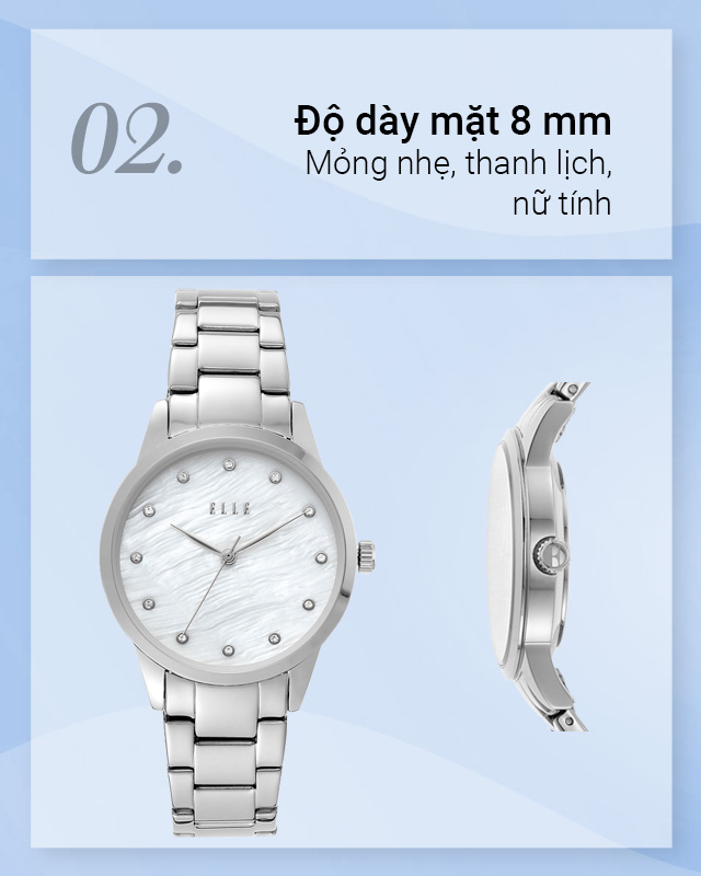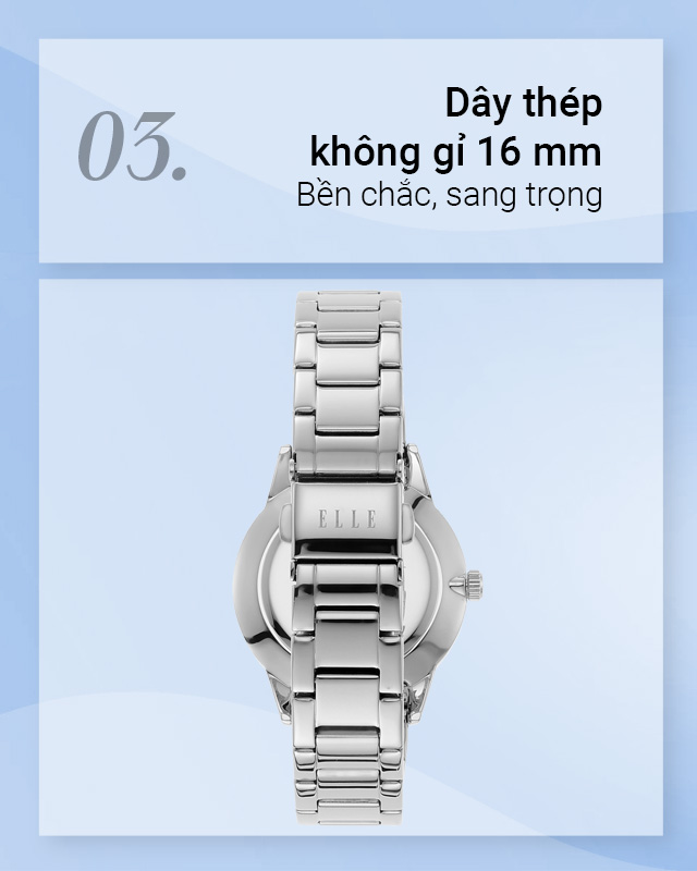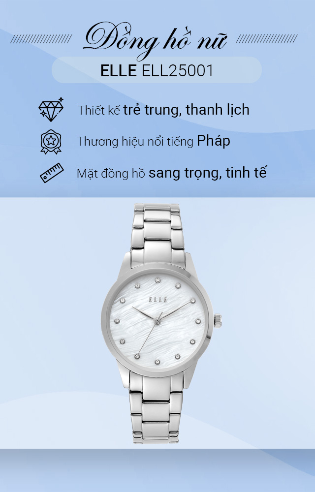 - Thiết kế đơn giản nhưng không kém phần sang trọng đến từ thương hiệu đồng hồ Elle của Pháp
