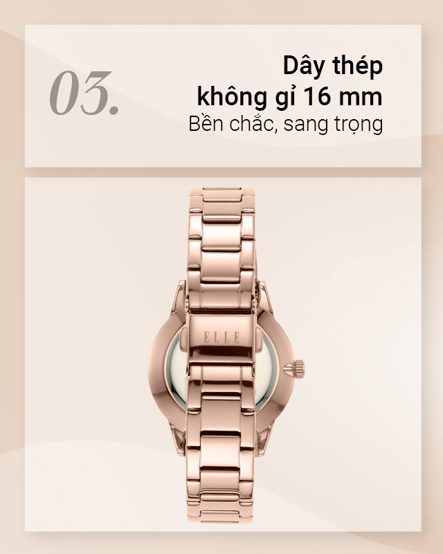 - Một sản phẩm đền từ kinh đô thời trang của thế giới thuộc hãng đồng hồ Elle (Pháp) với phong cách nhã nhặn, tinh tế