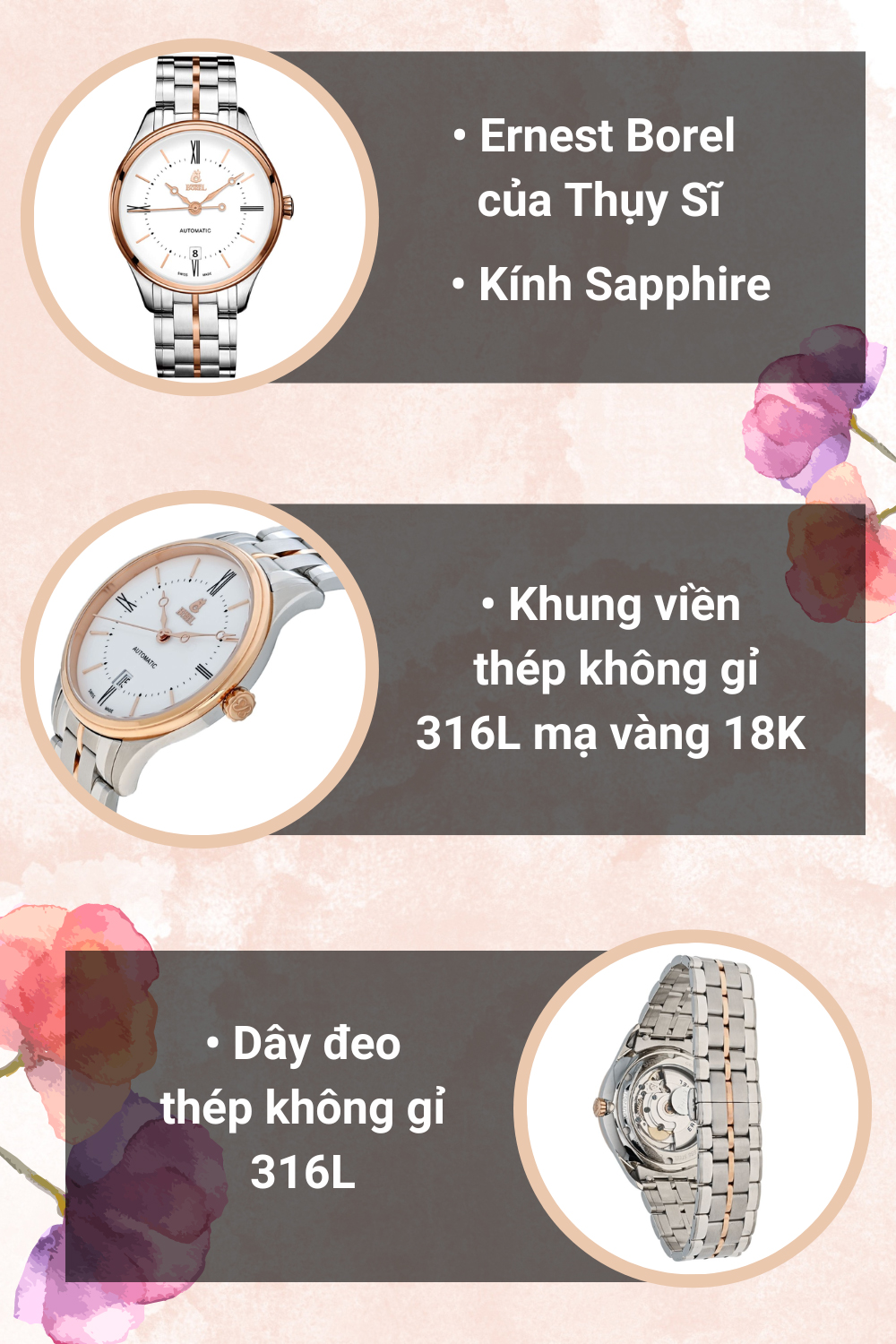 - Mang trong mình kiểu dáng sang trọng và tinh tế, thương hiệu đồng hồ Ernest Borel đến từ Thụy Sĩ