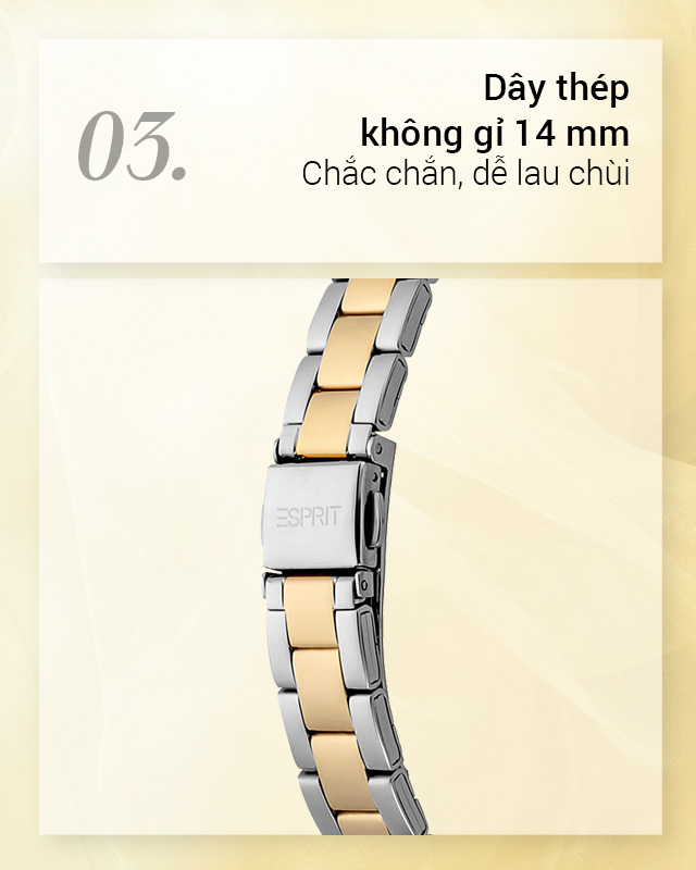 - Sản phẩm thuộc hãng đồng hồ Esprit, thương hiệu uy tín và nổi tiếng đến từ Mỹ