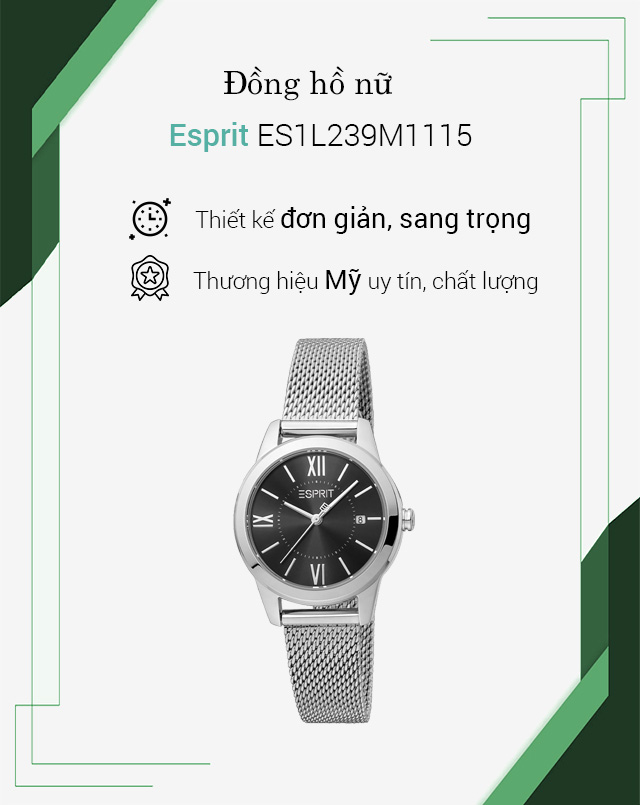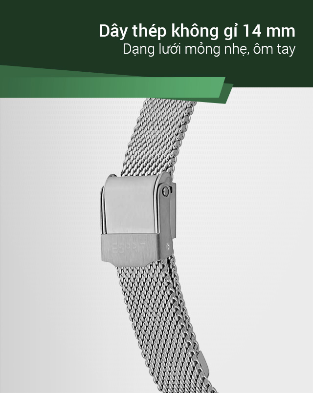 - Sở hữu diện mạo tinh tế và thời thượng đến từ hãng đồng hồ Esprit, thương hiệu uy tín của Mỹ
