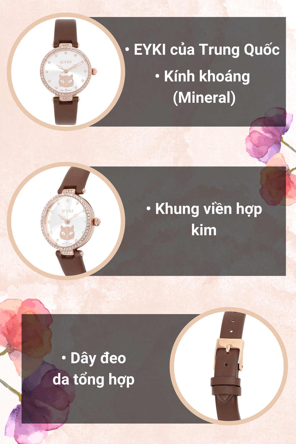 • Chiếc đồng hồ EYKI 30 mm Nữ EYL023-01 đến từ thương hiệu Eyki - Trung Quốc, đang thu hút sự chú ý nhờ thiết kế độc đáo và tạo nên một vẻ đẹp rực rỡ, cuốn hút. Đặc biệt, mặt đồng hồ được thiết kế hình mèo kết hợp với cọc số đính đá, tạo nên một vẻ đẹp dịu dàng và nữ tính, phù hợp với phong cách bánh bèo và dễ thương mà các bạn nữ yêu thích.