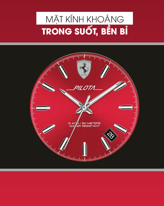 Đồng hồ Nam Ferrari 0830525 có mặt kính khoáng trong suốt, bền bỉ
