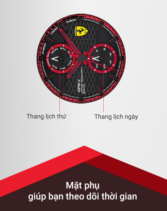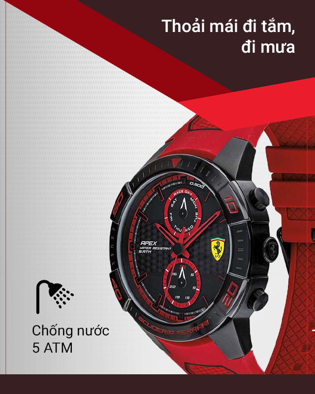 - Sắc đỏ trẻ trung, năng động đến từ thương hiệu đồng hồ Ferrari uy tín, chất lượng của Ý