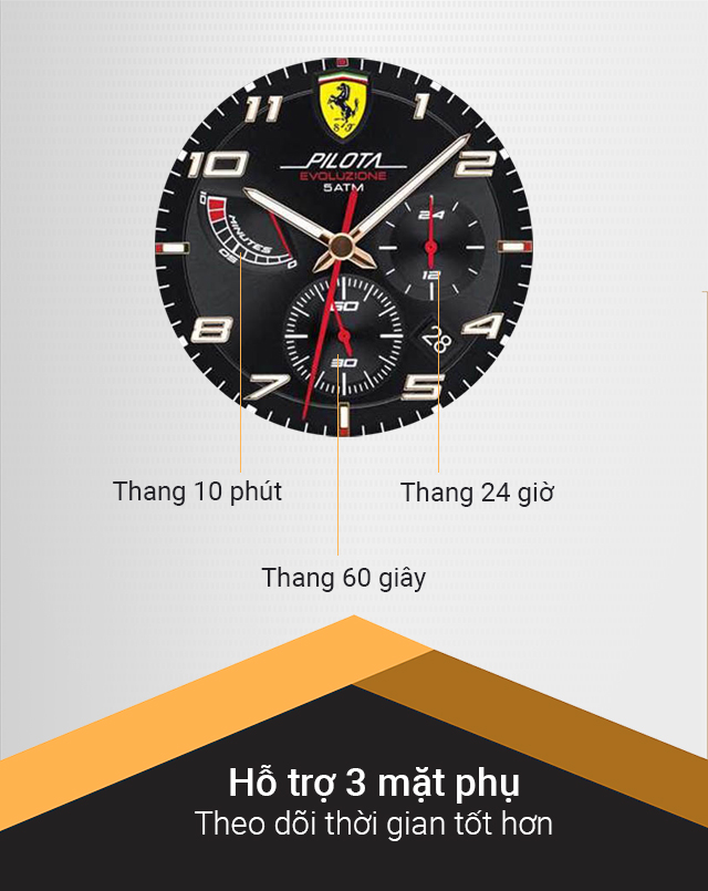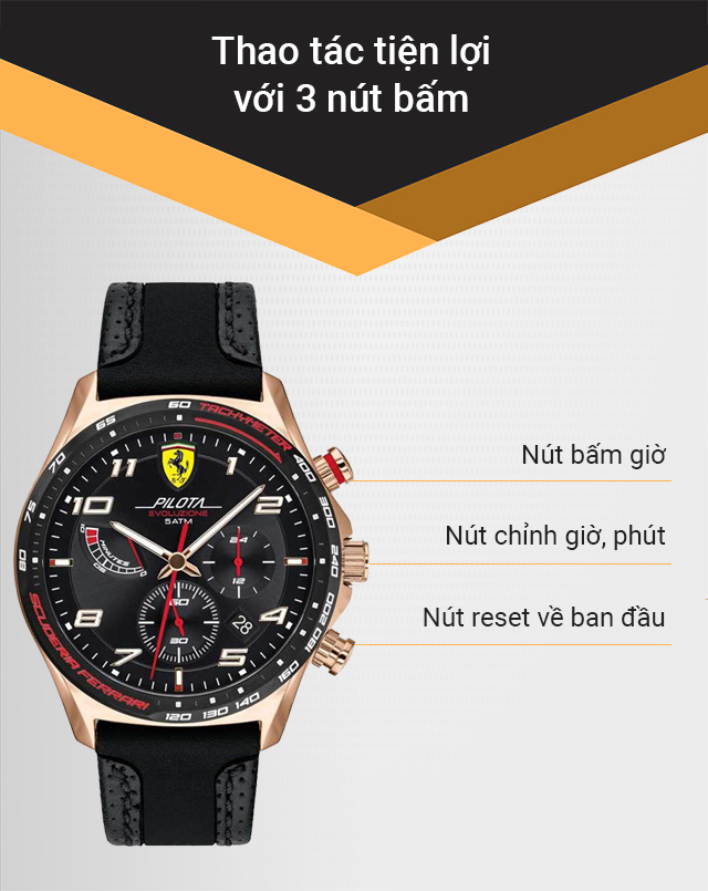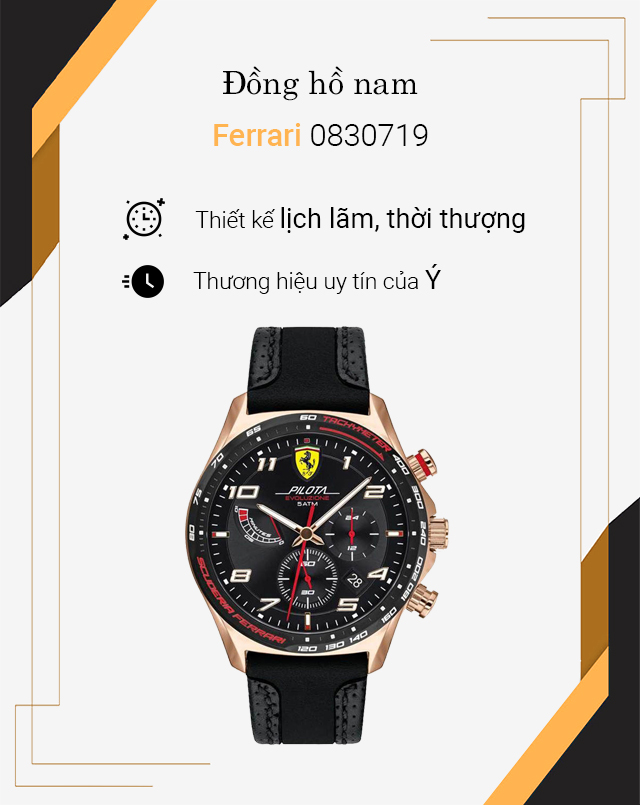 - Sở hữu diện mạo sang trọng, lịch thiệp, sản phẩm đến từ hãng đồng hồ Ferrari, thương hiệu uy tín của Ý