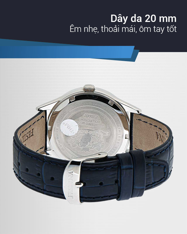 - Chiếc đồng hồ nhà Festina này có đường kính mặt 40 mm, độ rộng dây 20 mm