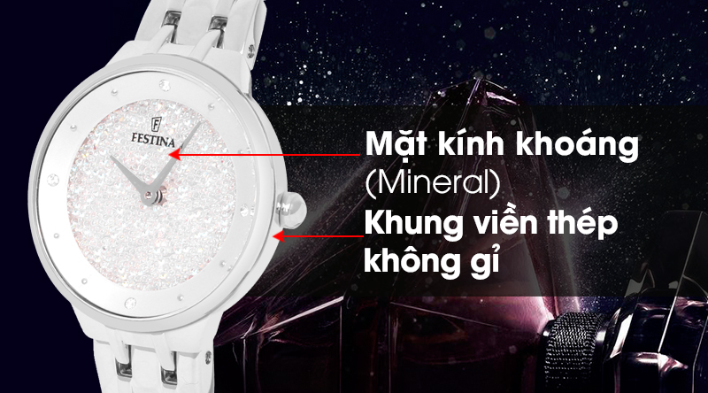 - Mặt kính đồng hồ Festina trong suốt, vệ sinh dễ dàng.