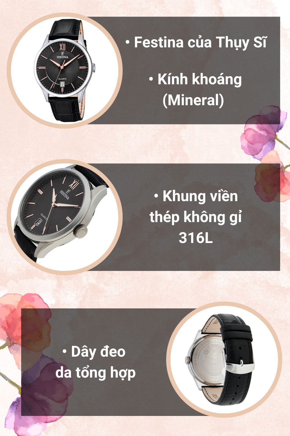 - Là chiếc đồng hồ nam tính, hiện đại đến từ thương hiệu đồng hồ Festina uy tín và lâu đời của Thụy Sĩ