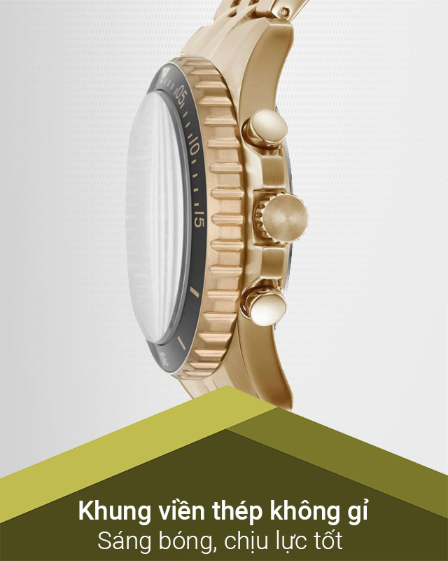- Đồng hồ trở nên bền bỉ hơn nhờ khung viền và dây đeo làm từ chất liệu thép không gỉ, khả năng chịu va đập tốt, dễ đánh bóng lại khi bị xước xát