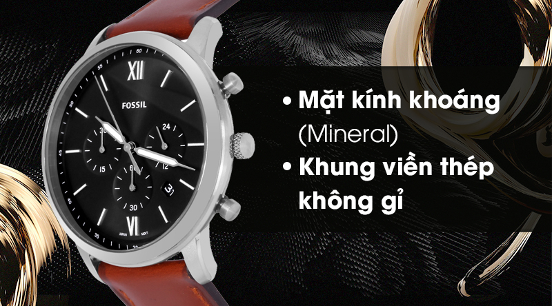 - Mặt kính đồng hồ Fossil cứng cáp, độ trong suốt tốt, hạn chế trầy xước khi va chạm.