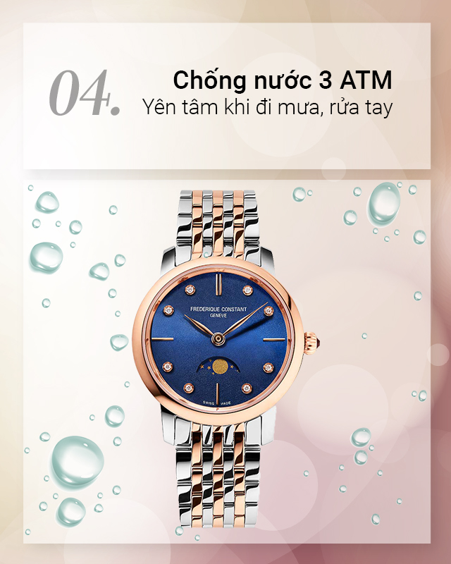 - Hệ số chống nước 3 ATM nên hoàn toàn an tâm đeo khi đi mưa và rửa tay. Tuy nhiên, không được mang khi tắm, bơi và lặn