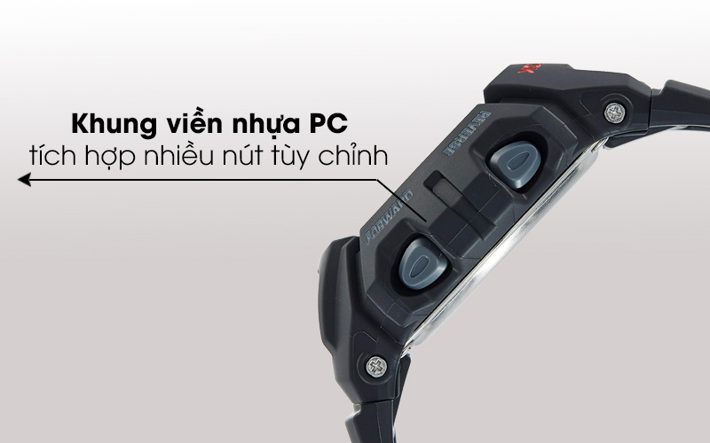 Bộ khung có thiết kế góc cạnh và đẹp mắt, được làm từ nhựa PC mang lại cho đồng hồ những ưu điểm như có trọng lượng nhẹ, chịu va đập tốt giúp kết cấu bên trong của đồng hồ được bảo vệ an toàn. Ngoài ra loại nhựa này còn an toàn cho sức khỏe của bạn khi đeo.