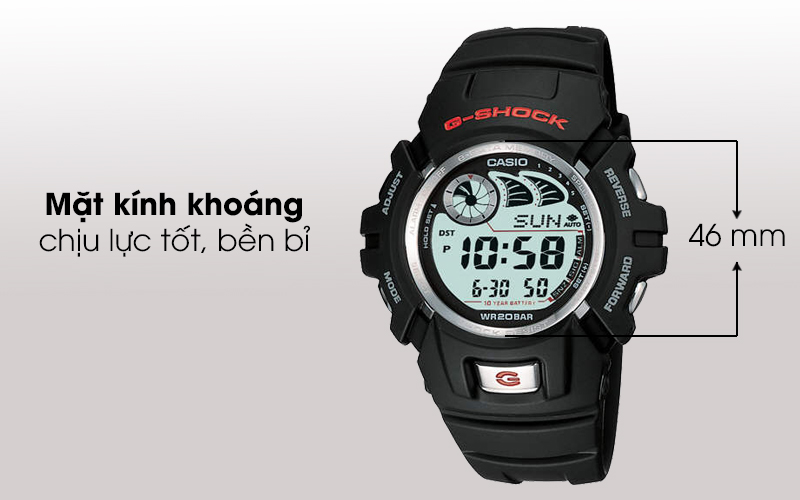 Màn hình chiếc đồng hồ G-shock nam có kích thước tương đối và được bảo vệ bằng kính khoáng trong suốt cùng khả năng chịu lực tốt, hạn chế trầy xước giúp người dùng yên tâm hơn khi đeo mẫu đồng hồ điện tử này.