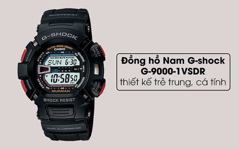 Đồng hồ nam G-shock G-9000-1VSDR đen có thiết kế đẹp mắt từ hình dáng đến màn hình đồng hồ, tất cả đều mang hơi hướng thể thao, năng động rất phù hợp với giới trẻ hiện đại và thích hoạt động.