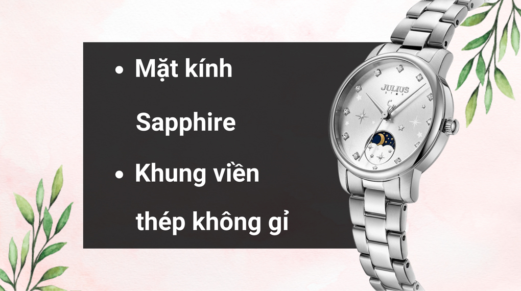 • Nếu bạn yêu thích vẻ đẹp của đồng hồ Sun and Moon cùng ý nghĩa của nó, đừng nên bỏ qua mẫu đồng hồ Nữ Julius Star 29 mm Nữ JS-029A thuộc thương hiệu Julius đến từ Hàn Quốc. Mặt số được lấy ý tưởng từ bầu trời ngàn sao lấp lánh, những ngôi sao trên mặt đồng hồ góp phần điểm tô cho cỗ máy thời gian được lung linh, tỏa sáng. Sản phẩm này sẽ phù hợp với những quý cô theo đuổi phong cách điệu đà nhưng vẫn giữ được sự sang trọng khi đeo.
