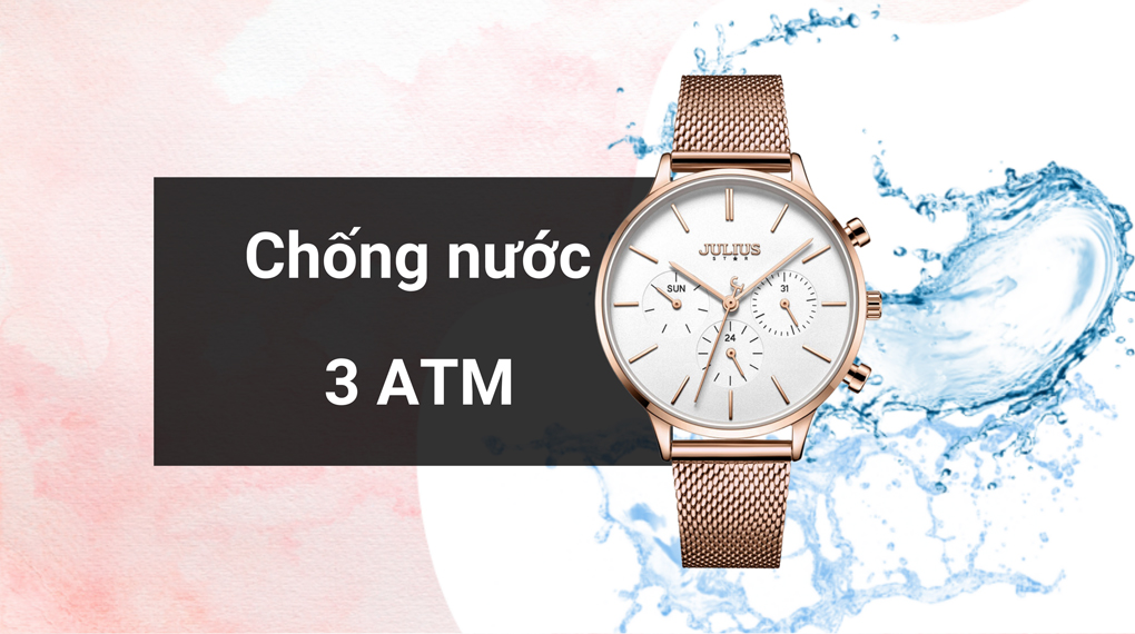 • Hệ số chống nước 3 ATM giúp đồng hồ an toàn khi rửa tay và đi mưa, không đeo đồng hồ nữ khi đi tắm.