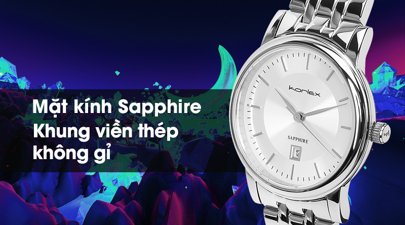 - Chiếc đồng hồ Korlex này được trang bị mặt kính có độ trong suốt và độ cứng cao, khó nứt vỡ và trầy xước khi bị va chạm nhẹ.