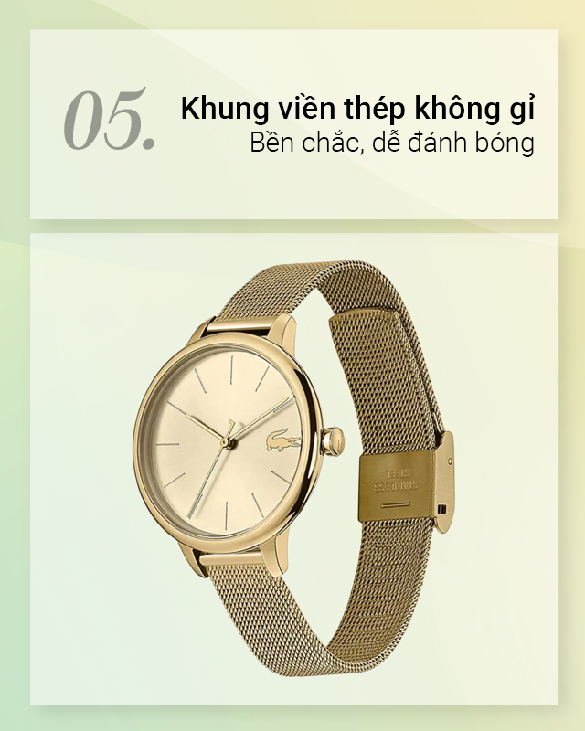 - Mẫu đồng hồ nữ này có chất liệu khung viền và dây đeo từ thép không gỉ có độ bền cao, chống oxi hóa, sang trọng