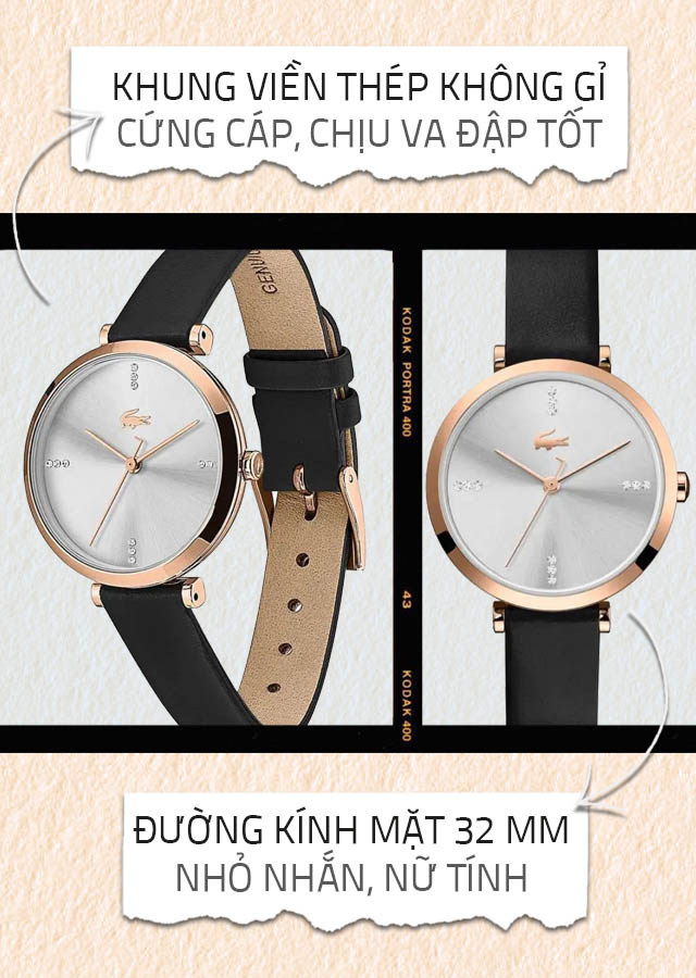 - Đến từ hãng đồng hồ Lacoste, thương hiệu đồng hồ nổi tiếng và uy tín của Pháp. Sản phẩm có thiết kế đơn giản, thanh lịch
