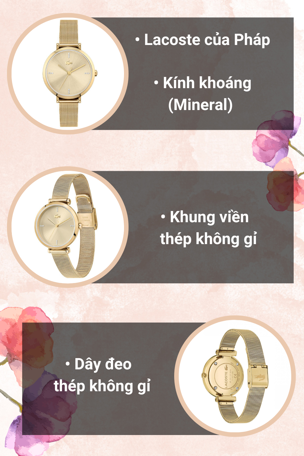 - Đến từ hãng đồng hồ Lacoste, thương hiệu đồng hồ nổi tiếng và uy tín của Pháp