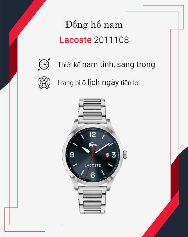 - Sản phẩm mang cảm giác sang trọng, lịch lãm của thương hiệu đồng hồ Lacoste đến từ Pháp