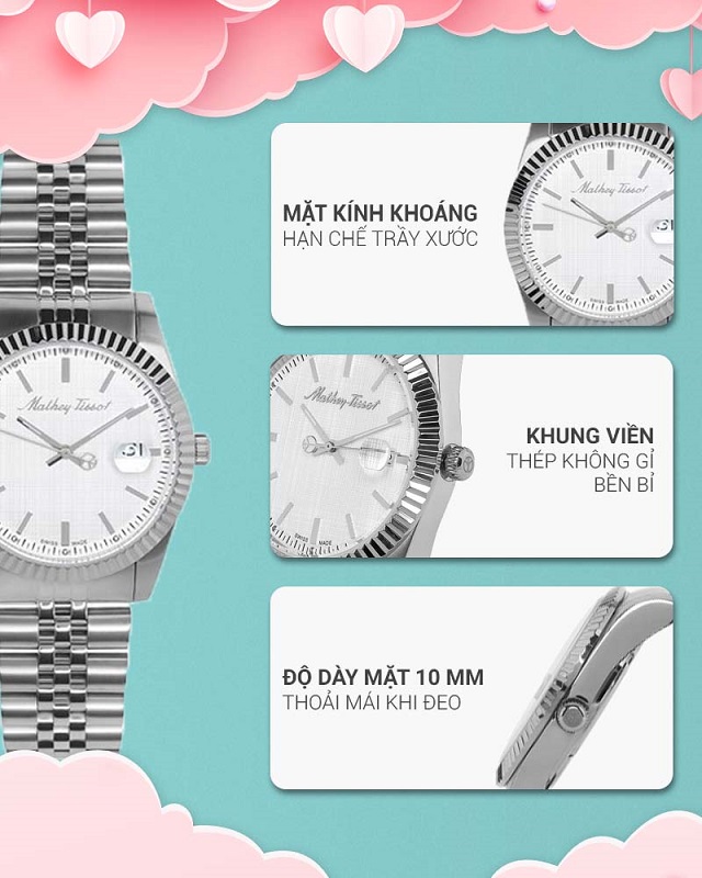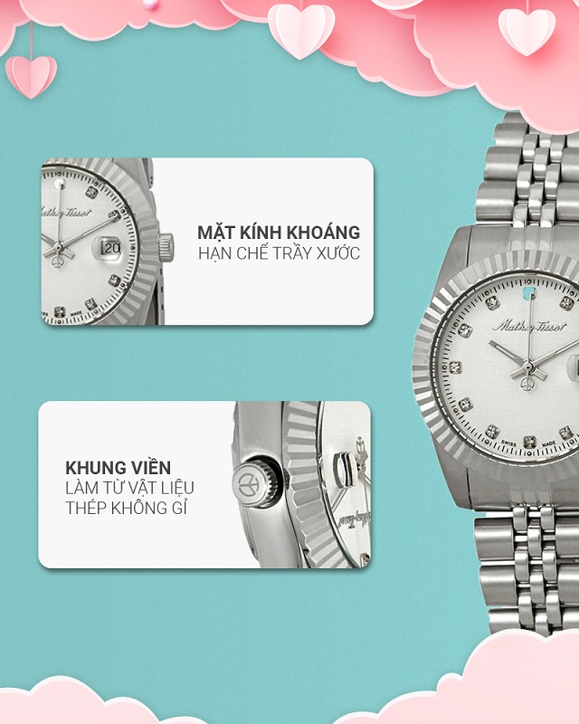 - Mẫu đồng hồ đôi này đến từ thương hiệu đồng hồ Mathey Tissot uy tín và chất lượng của Thụy Sĩ