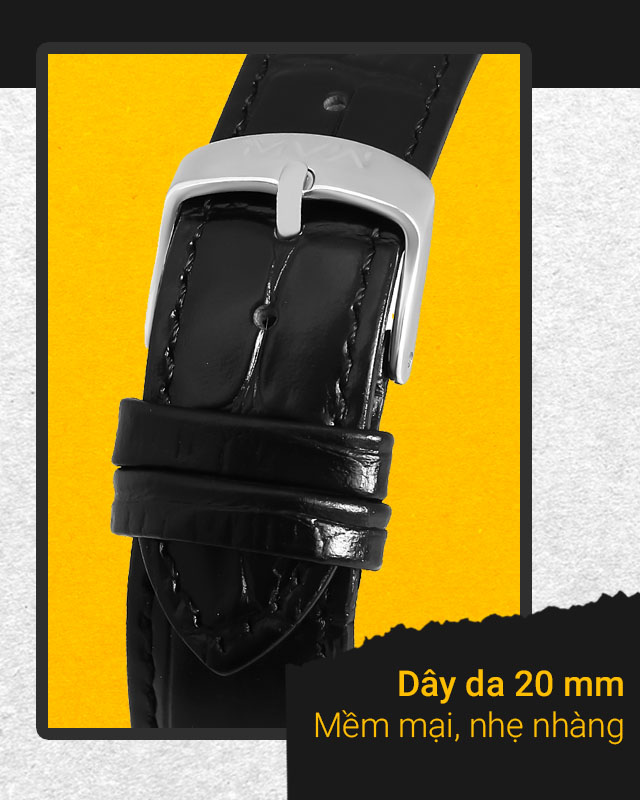- Dây da mềm mại, trọng lượng nhẹ, thoải mái khi đeo. Khung viền làm từ thép không gỉ bền bỉ, sáng bóng, chịu được mọi điều kiện thời tiết