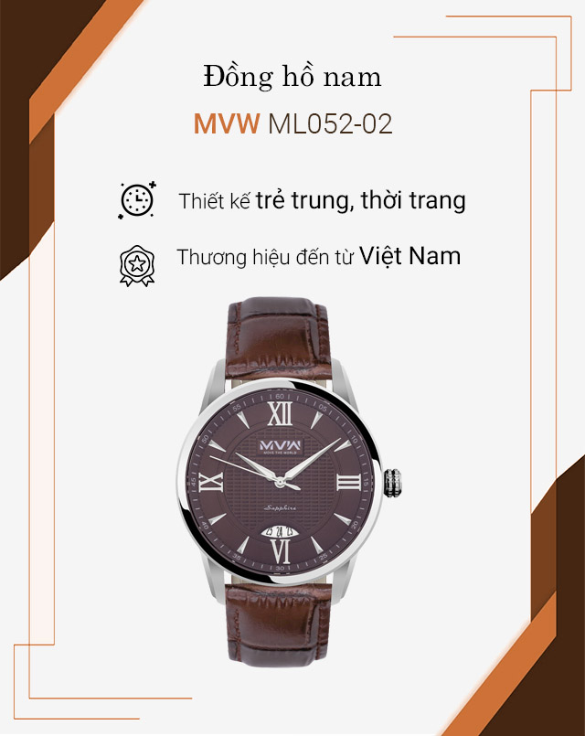 - Thuộc hãng đồng hồ MVW của Việt Nam - thương hiệu độc quyền của Thế Giới Di Động, đem lại cho bạn sự hài lòng khi đeo trên tay