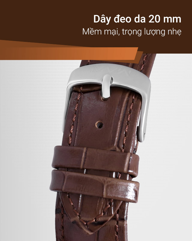 - Dây da êm ái, không gây siết tay khi đeo. Khung viền làm từ thép không gỉ chắc chắn, dễ dàng lau chùi khi bám bụi, chống ăn mòn tốt