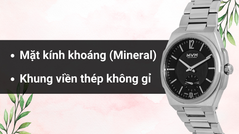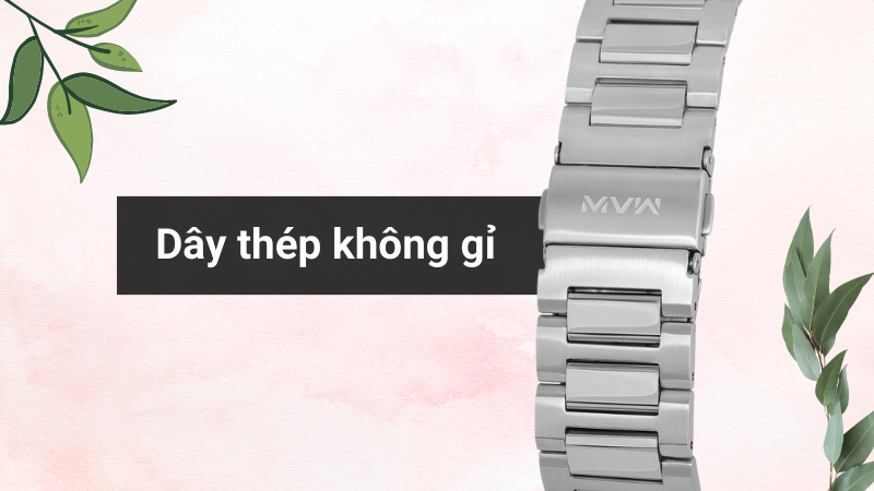 • Chất liệu của khung viền và dây đeo đều được làm từ thép không gỉ cứng cáp, bền bỉ với thời gian. Chất liệu này giúp đồng hồ dễ dàng lau chùi, luôn giữ được vẻ sáng bóng.