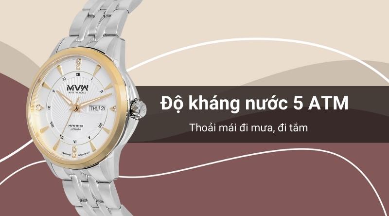 - Đồng hồ được đảm bảo an toàn với độ chống nước 5 ATM, bạn thoải mái đeo khi tắm, rửa tay hay đi mưa, không mang khi bơi, lặn.