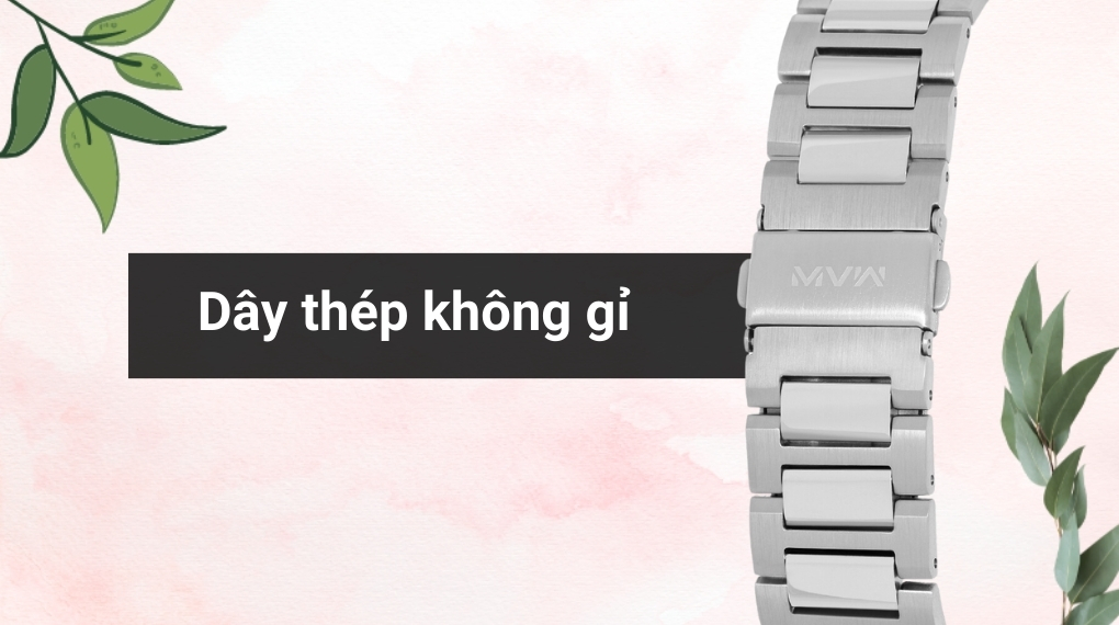 • Đi cùng với vẻ ngoài bắt mắt của đồng hồ này là khung viền và dây đeo được làm từ thép không gỉ bóng bấy, không chỉ mang đến sự sang trọng, thu hút mà chất liệu này còn đem đến độ bền cao, có khả năng chống ăn mòn và chống trầy xước tốt trước các tác động của môi trường.