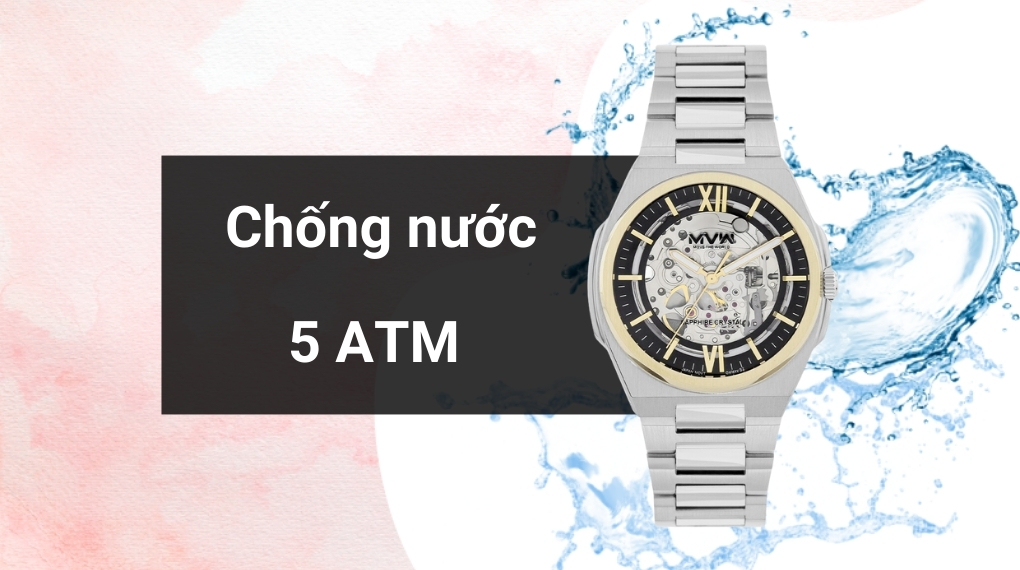 • Đồng hồ nam này có hệ số chống nước là 5 ATM có thể đáp ứng được các nhu cầu sinh hoạt hàng ngày của các quý ông như đi tắm, đi mưa và đi rửa tay. Lưu ý: không nên mang theo khi bơi hoặc lặn.