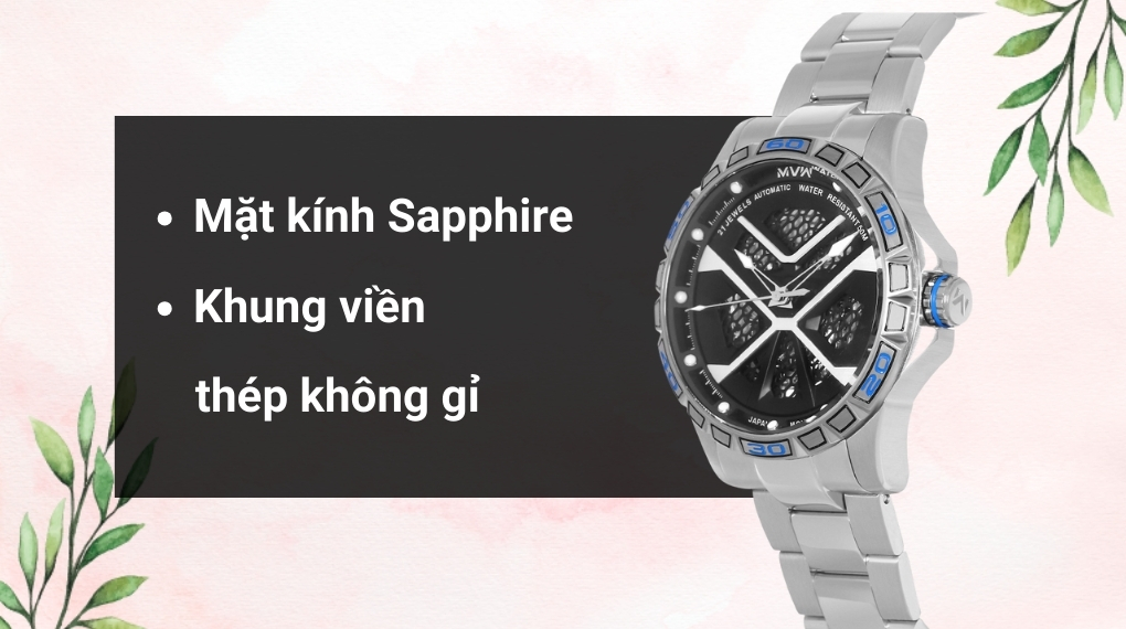 • Một sản phẩm nằm trong BST Galaxy của hãng, đồng hồ MVW Galaxy 43 mm Nam MSA093-02-S2 nổi bật với mặt số có lớp lưới ẩn hiện đẹp mắt và vành bezel dạng bánh răng khỏe khoắn, không chỉ tạo được chiều sâu mà còn làm bật lên vẻ ngoài thanh lịch và hiện đại của sản phẩm.