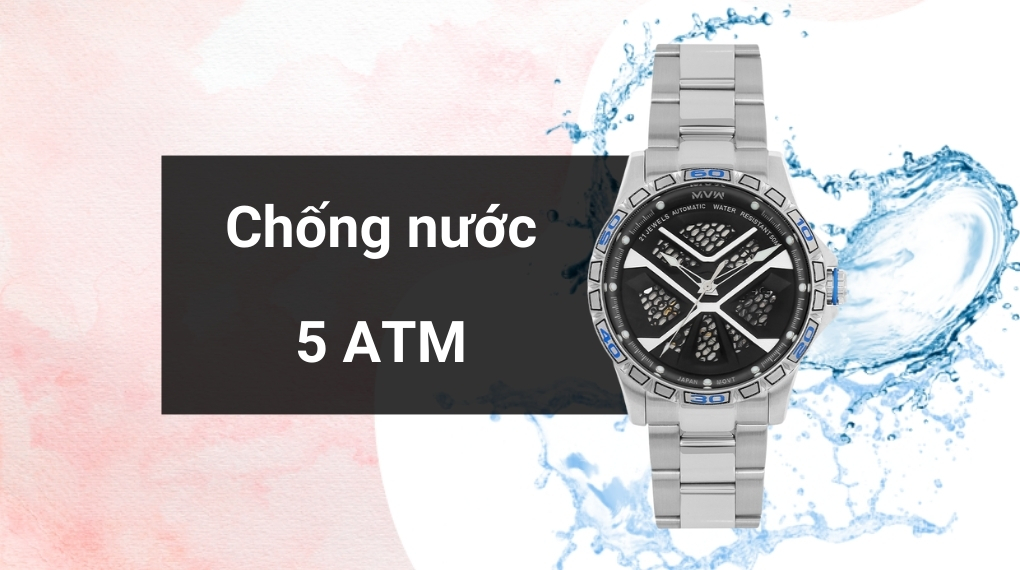 • Sở hữu hệ số chống nước lên đến 5 ATM, bạn có thể an tâm đeo đồng hồ MVW này khi rửa tay, đi mưa hay đi tắm. Lưu ý: không nên đeo theo khi bơi hoặc lặn.