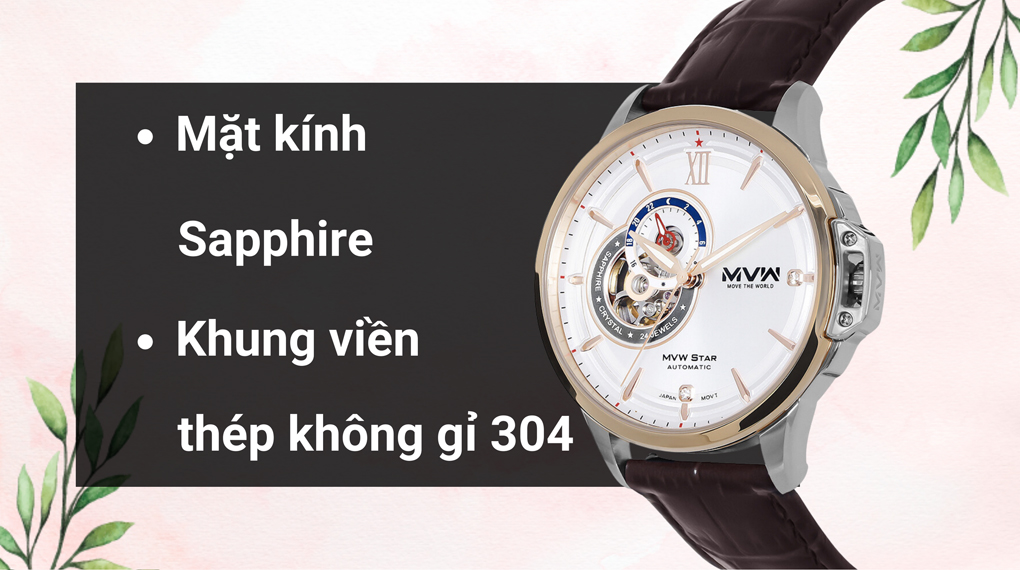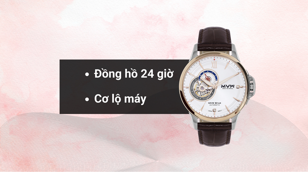 • Đồng hồ MVW Star 41.5 mm Nam MLA004-02N đến từ Việt Nam của thương hiệu MVW được coi là sự kết hợp hoàn hảo giữa tính tiện dụng và thẩm mỹ. Điểm nổi bật đặc trưng của chiếc đồng hồ này là đồng hồ lộ tim, là tên gọi chung dành cho những mẫu đồng hồ với một cửa sổ để lộ ra phần trái tim nằm ngay trên mặt số.