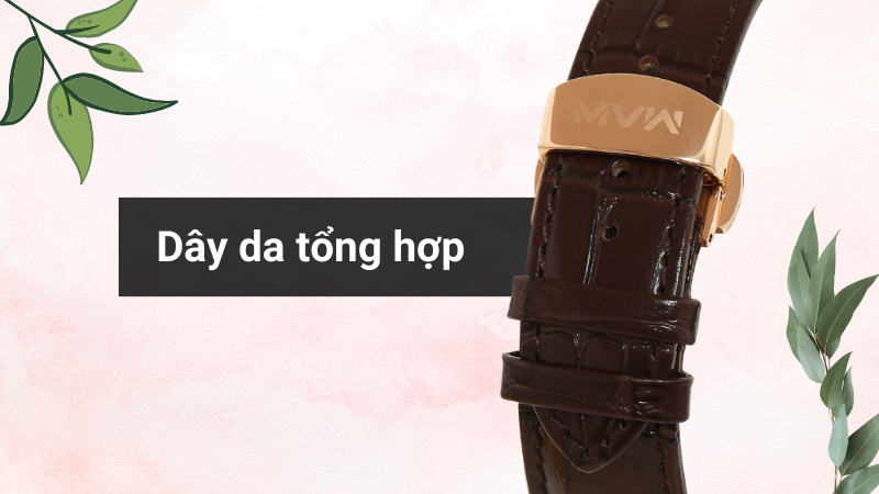 • Khung viền được làm từ thép không gỉ 316L bền chắc, chịu lực tốt, dễ lau chùi khi bám bẩn. Dây đeo làm từ da tổng hợp thoải mái khi đeo cả ngày dài.