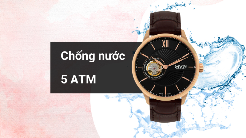 • Đồng hồ MVW STAR 42 mm Nam MLA005-01 được đảm bảo an toàn với độ chống nước 5 ATM, bạn thoải mái đeo khi tắm, rửa tay hay đi mưa, không mang khi bơi, lặn.