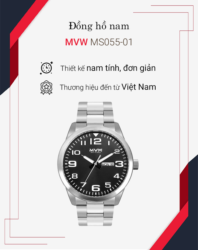 - Đến từ hãng đồng hồ MVW của Việt Nam - thương hiệu độc quyền của Thế Giới Di Động, mang thiết kế trẻ trung và nam tính