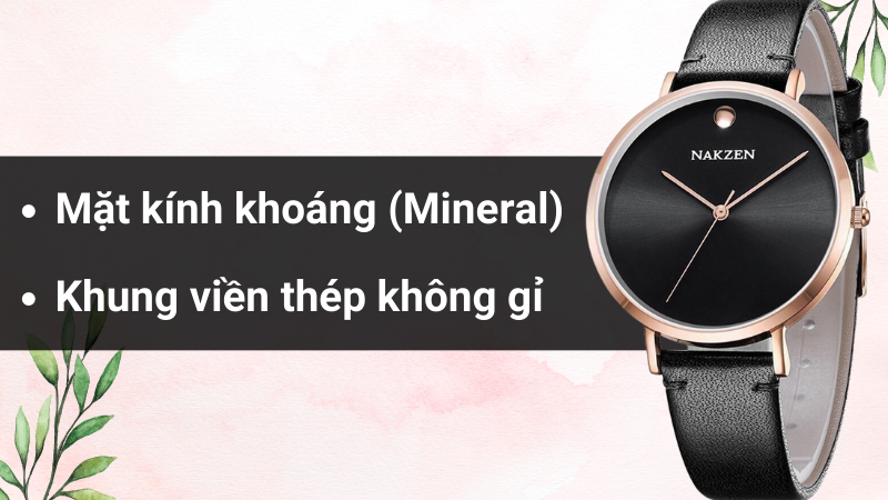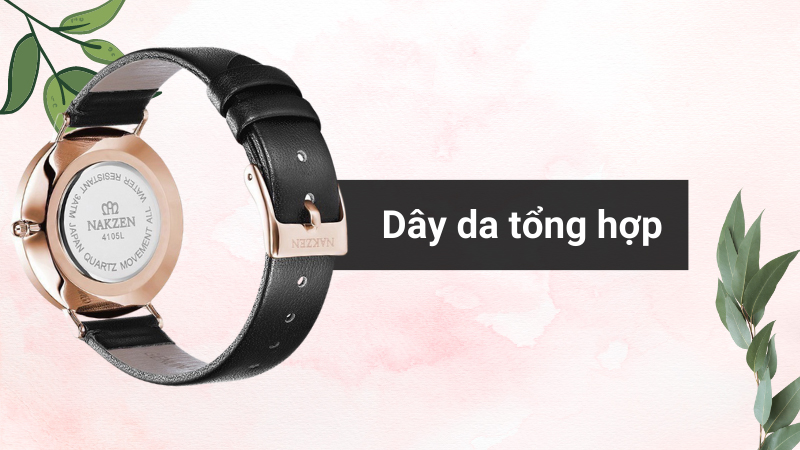 - Chiếc đồng hồ nữ có dây da sang trọng ôm lấy cổ tay, khung viền làm từ thép không gỉ giúp cho đồng hồ luôn bền bỉ