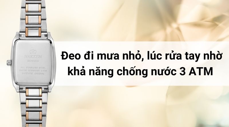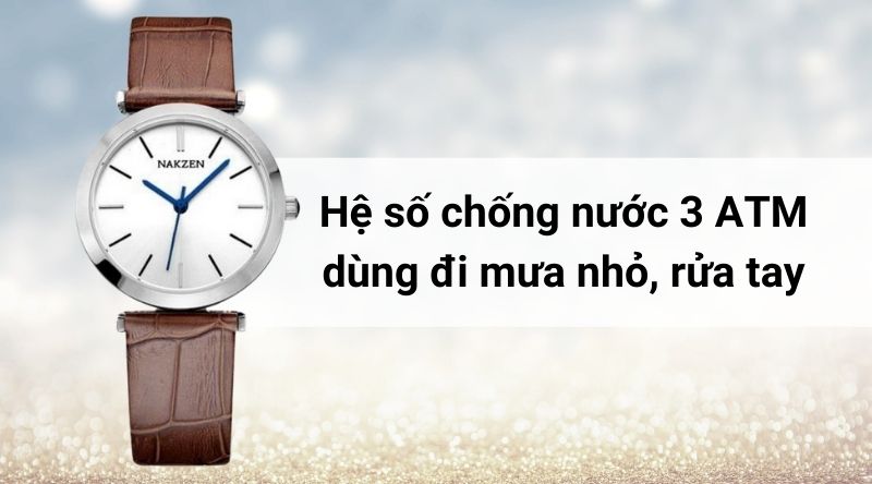 - Hệ số chống nước là 3 ATM, bạn có thể dùng khi đi dưới mưa nhỏ và lúc rửa tay. Lưu ý không sử dụng khi đi bơi, lặn, đi tắm.