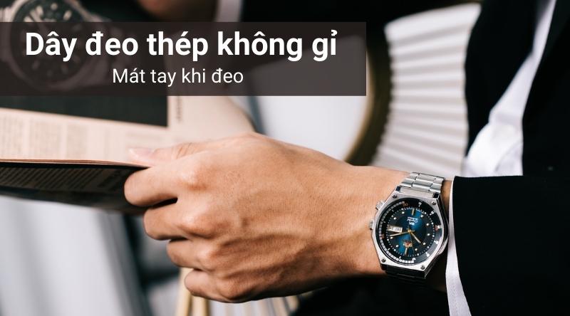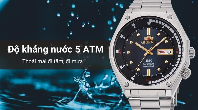- Mẫu đồng hồ nam được trang bị hệ số chống nước lên đến 5 ATM, bạn có thể an tâm khi mang đi tắm và đi mưa, tuy nhiên không nên đeo đi bơi, lặn.