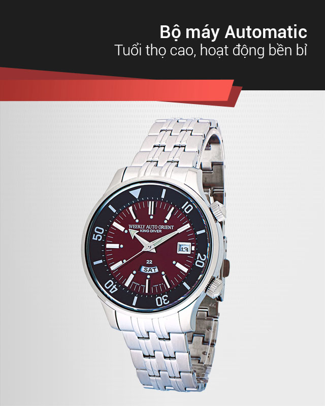 - Đồng hồ Automatic có tuổi thọ cao, hoạt động nhờ chuyển động của cổ tay, thời gian trữ dây cót khoảng 40 tiếng