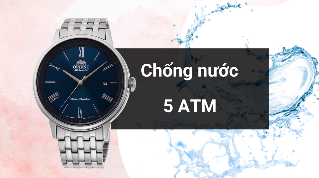 • Đồng hồ nam này có khả năng chống nước ở mức 5 ATM, cho phép bạn sử dụng khi rửa tay, tiếp xúc với mưa hoặc tắm biển. Lưu ý: không nên đeo khi bơi hoặc lặn.