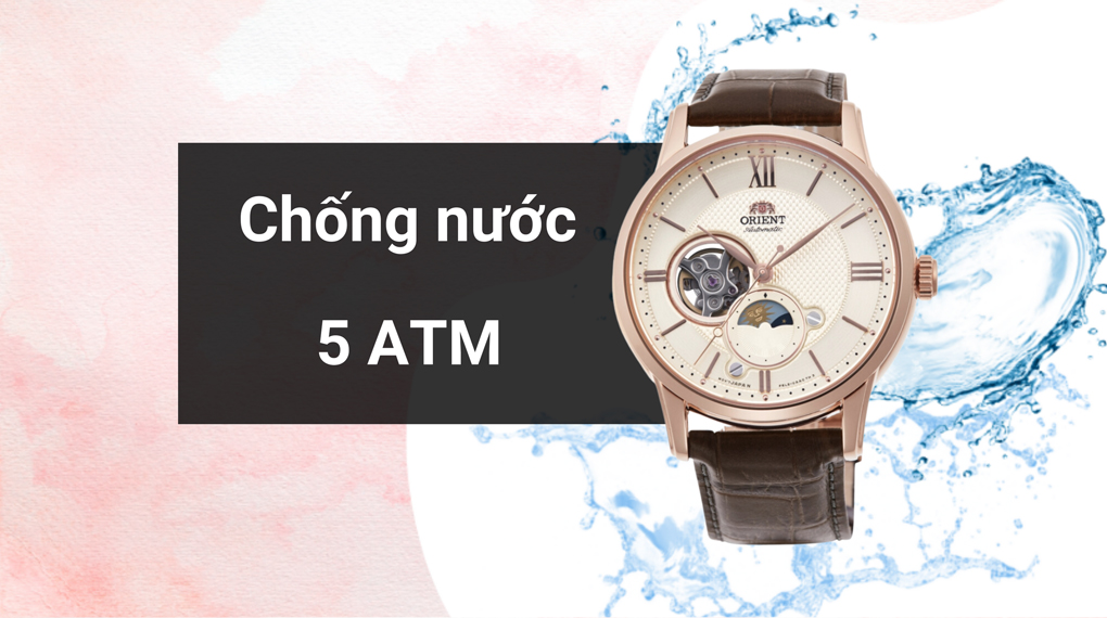 • Người dùng hoàn toàn có thể tự tin đeo mẫu đồng hồ Orient này trong các hoạt động hàng ngày như rửa tay, đi mưa hay tắm nhờ khả năng kháng nước lên đến 5 ATM. Lưu ý: đừng đeo khi đi bơi hay lặn.