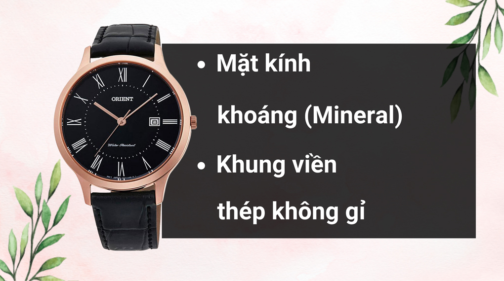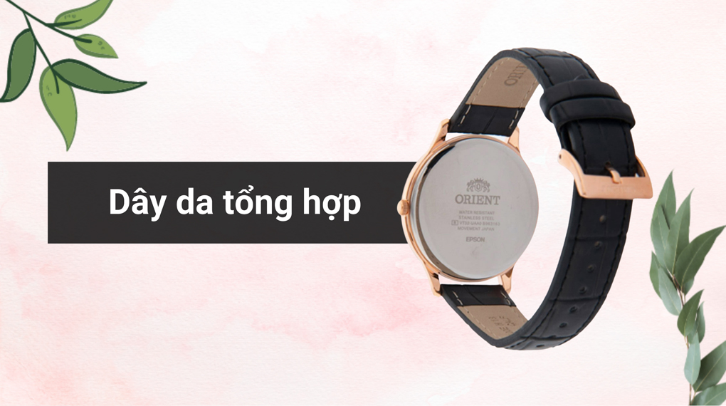 • Phần dây đeo của chiếc đồng hồ Orient này được trang bị da tổng hợp tạo cảm giác nhẹ nhàng hay thoải mái khi đeo. Phần khung viền của sản phẩm làm bằng chất liệu thép không gỉ, có khả năng hạn chế ăn mòn khá trước tác động từ môi trường mang lại bền bỉ theo năm tháng cho người dùng.