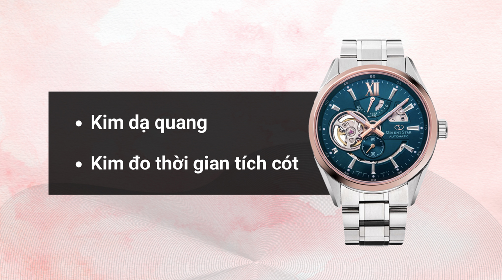• Đồng hồ Orient Star 41 mm Nam RE-AV0120L00B thuộc thương hiệu Orient của Nhật Bản, mang phong cách Classic cổ điển, ấn tượng đầu tiên bạn cảm nhận thấy sẽ là kiểu dáng khoẻ khoắn và vô cùng mạnh mẽ, ấn tượng với những chi tiết được gia công đầy tỉ mỉ. Đặc biệt, mặt đồng hồ được thiết kế lộ cơ, giúp bạn có thể chiêm ngưỡng toàn bộ quá trình hoạt động của bộ máy bên trong.